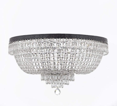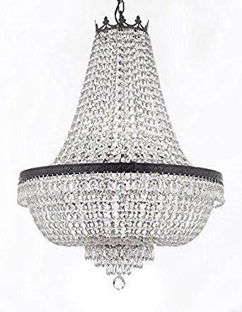 French Empire Crystal Flush Chandelier Chandeliers Lighting H18" X W24" With Dark Antique Finish! Good for Dining Room, Foyer, Entryway, Family Room and More! This beautiful Chandelier is trimmed with Empress Crystal(TM) 100% CRYSTAL SEMI FLUSH CHANDELIER, this chandelier is characteristic of the grand chandeliers which decorated the finest Chateaux and Palaces across Europe and reflects a time of class and elegance which is sure to lend a special atmosphere in every home. SIZE WD 24 X HT 18 9 LIGHTS Please note this item requires assembly.