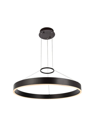 Confident, bold, and fearless are all words that can describe the Jenta pendant in a brown finish. As light illuminates from the main ring, a smaller circle above, as if a halo, adds visual interest by seemingly pulling the wires taut. This LED pendant lamp will elevate the aesthetics of any room in your home, whether it's at the foyer, living room, or dining room.