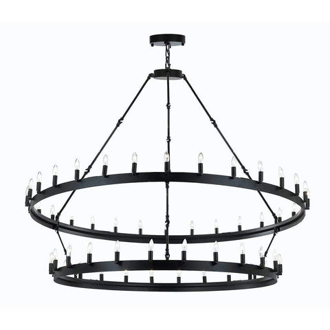 Set of 2 - Wrought Iron Vintage Barn Metal Castile Two Tier Chandelier Chandeliers Industrial Loft Rustic Lighting W 63" H 60" Size: W 63" H 60" 54 Lights