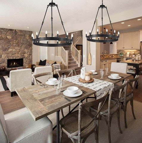 Set of 2 - Wrought Iron Vintage Barn Metal Castile One Tier Chandelier Chandeliers Industrial Loft Rustic Lighting W 26" H 27"